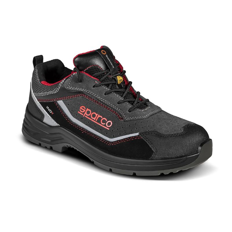 La Detroit ESD S1PS SR FO LG signée Sparco répond aux exigences strictes de la norme EN ISO 20345:2022 pour protéger efficacement chaque mouvement. Son embout en fibre de verre non magnétique 200 J sécurise l’avant du pied sans alourdir, tandis que la semelle textile anti-perforation ≥ 1100 N protège contre les risques invisibles du quotidien.